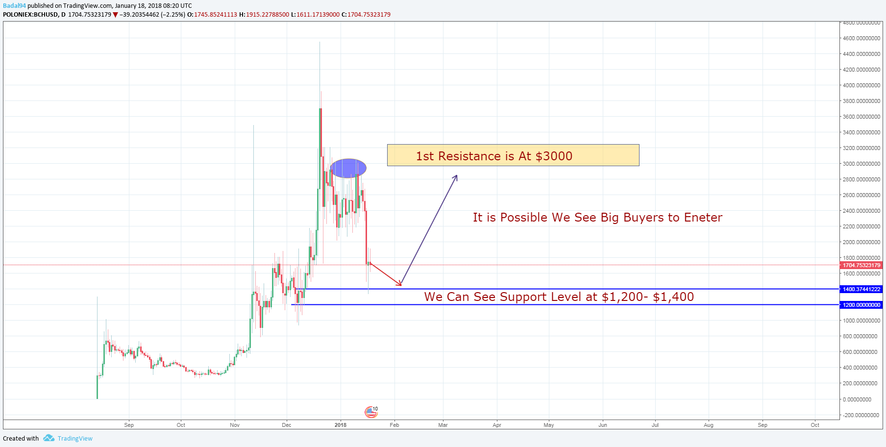 Bitcoin Cash Technical View 18/01/2018